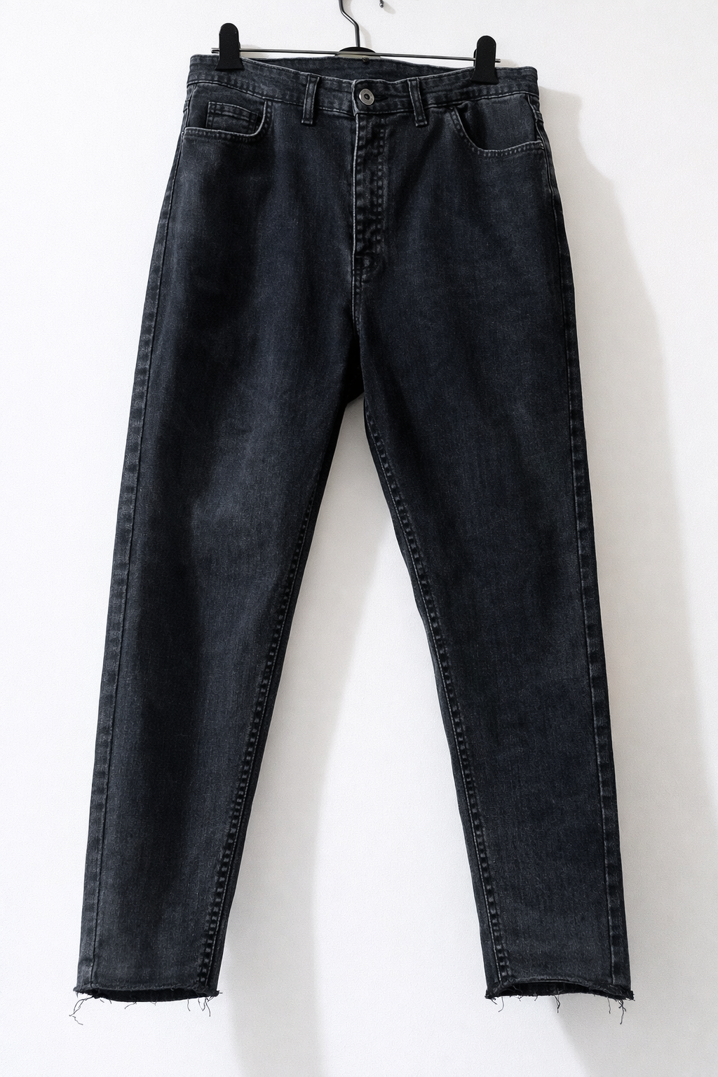 این شلوار جین مردانه با رنگ مشکی ذغالی طراحی شده است.